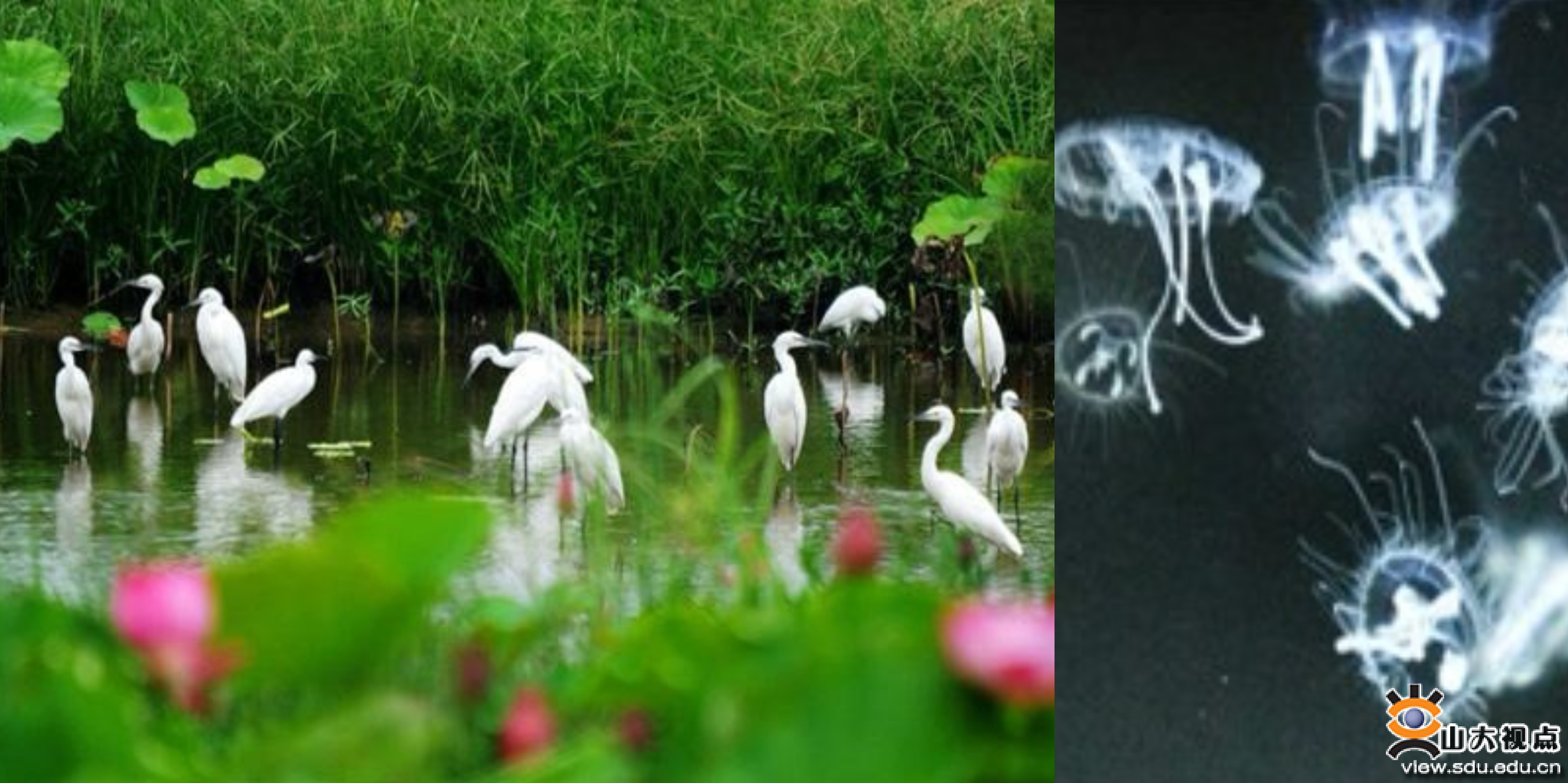 山光水色,厚民之生。现在的南四湖,已是一派生机勃勃的景象。一棹烟波里菡萏香清,两侧堤岸上杨柳依依。“水中大熊猫”桃花水母、“鸟中大熊猫”震旦鸦雀青头潜鸭、出现在南四湖流域,白枕鹤等极危、濒危物种也纷纷重现,旅游业等第三产业蓬勃发展……在山大流域水环境研究团队和多方努力下,南四湖完成了从“酱油汤”到生态湖的华丽转身。