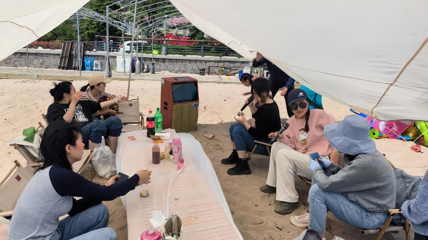 饭后大家回到天幕下,进行了各式各样的活动:放风筝、海边唱K、桌游、沙滩摩托等等,大家玩得不亦可乎。