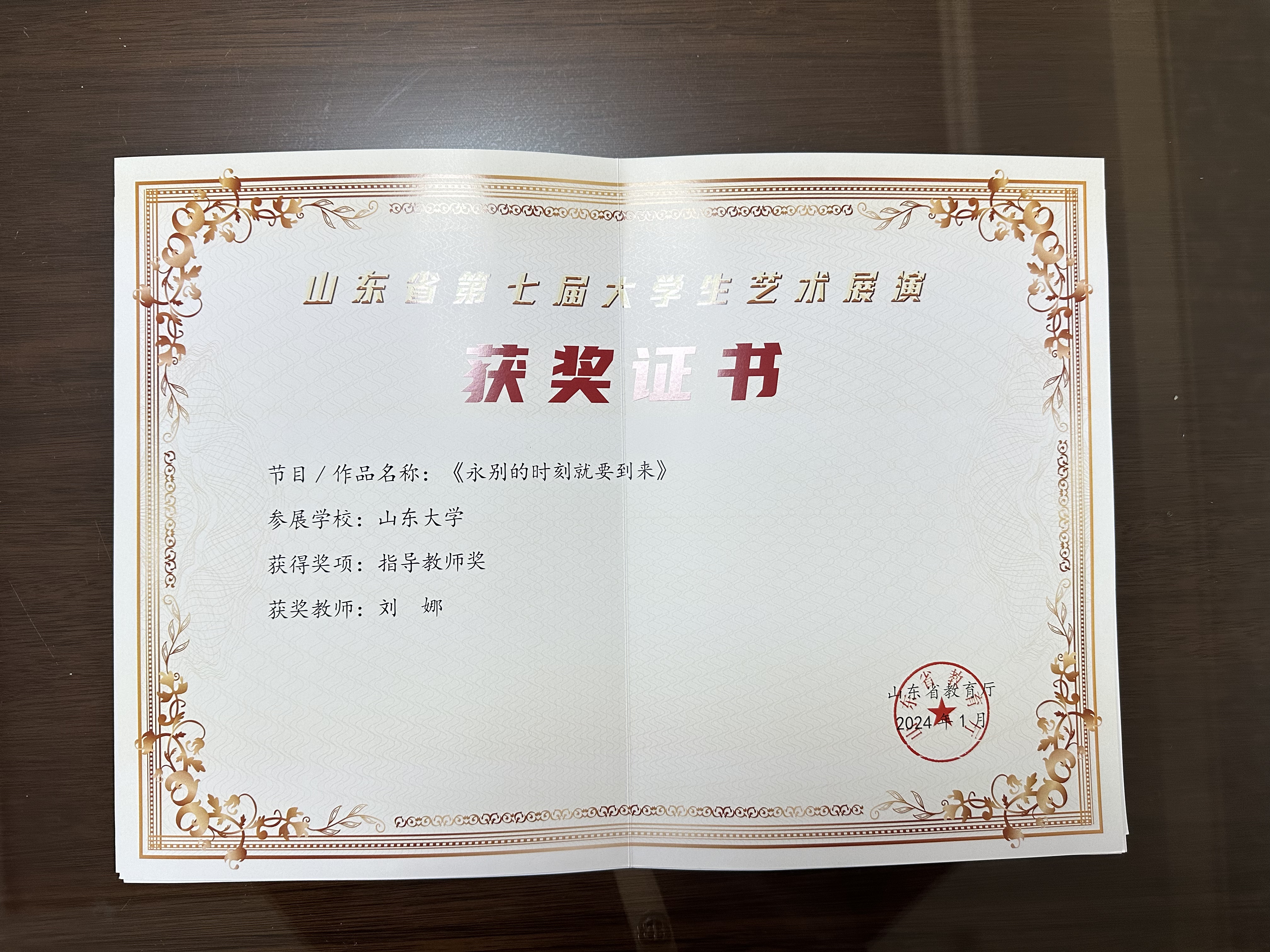 获奖名称:山东省第七届大学生艺术展演
