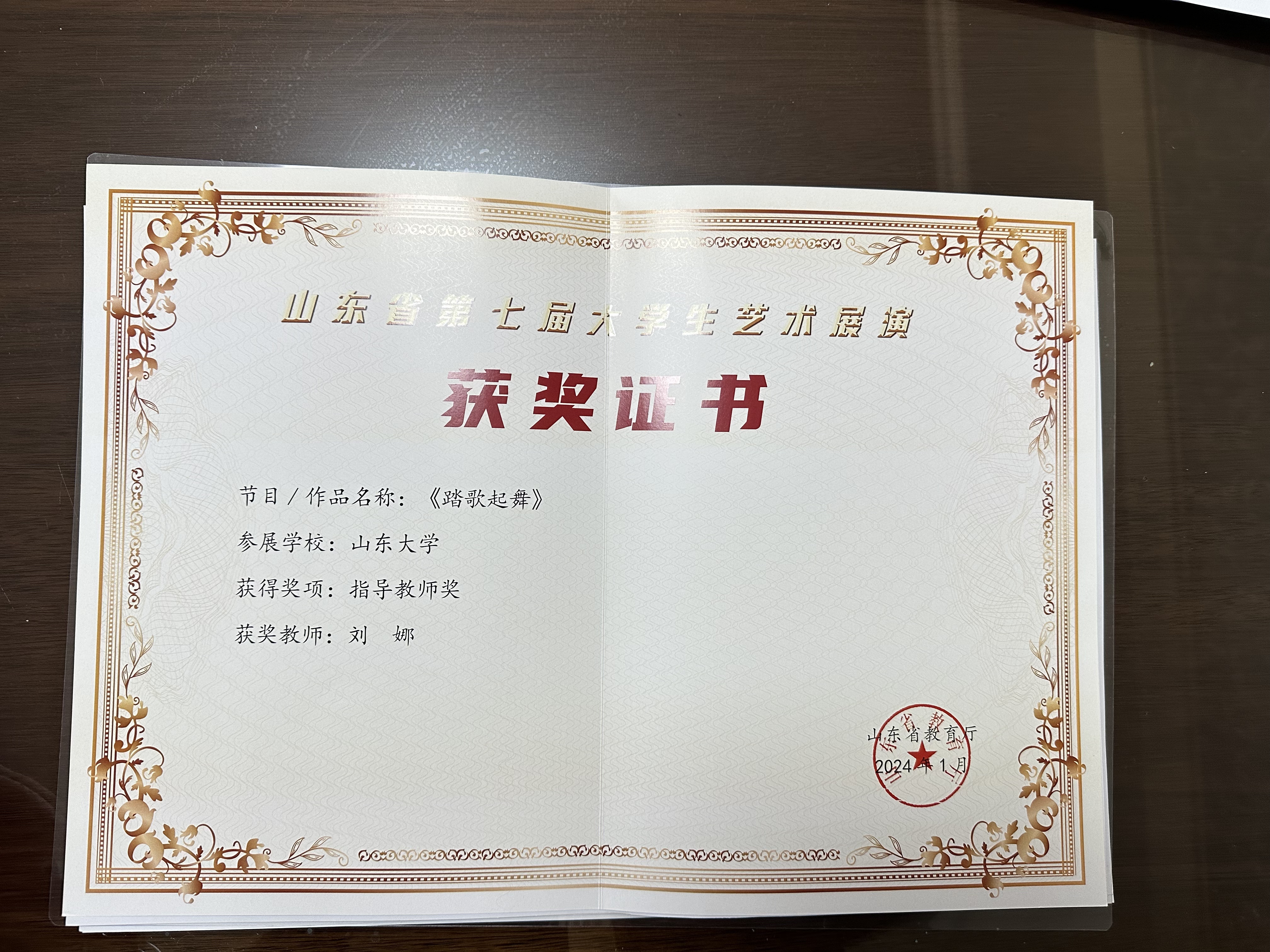 获奖名称:山东省第七届大学生艺术展演