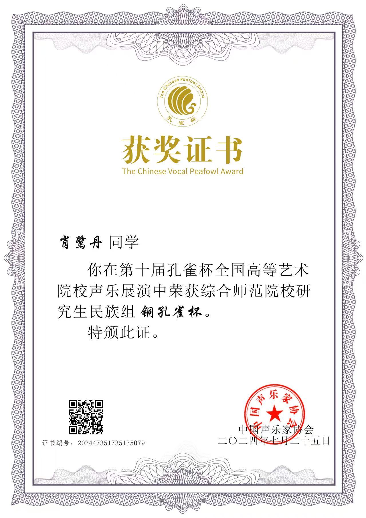 获奖名称:2024第十届孔雀杯全国高等艺术院校声乐展演