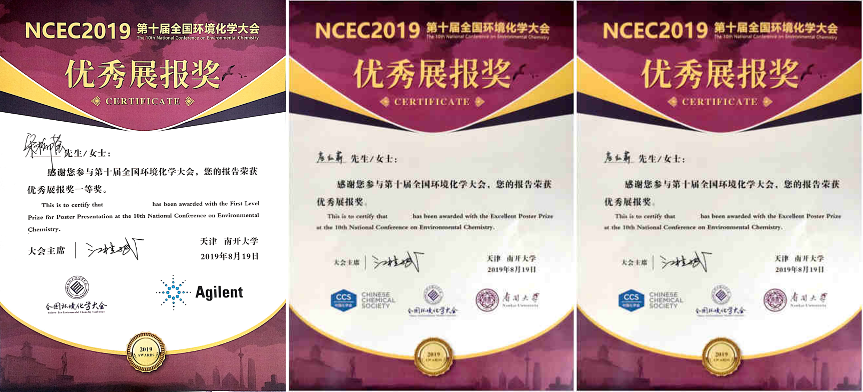 第十届环境化学大会一等奖,优秀奖