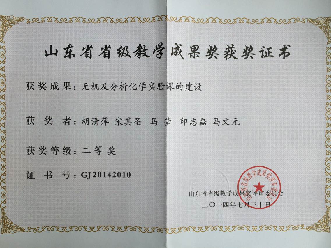 2004曾获荣誉当选: 山东省高校首届教学名师
