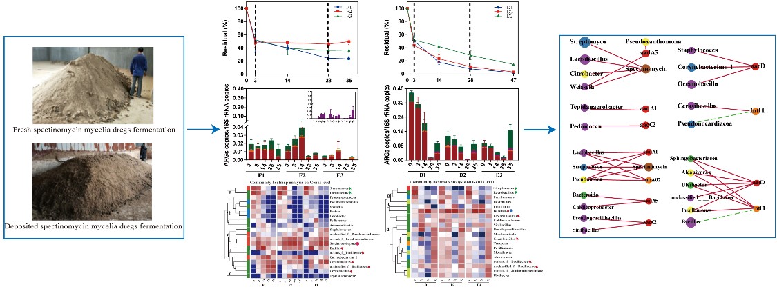 mechanisms of antibiotic and antibiotic resistance genes (ARGs) during the fermentation of different spectinomycin mycelial dregs (SMDs). The results showed that the removal efficiency of antibiotic in the fermentation of
