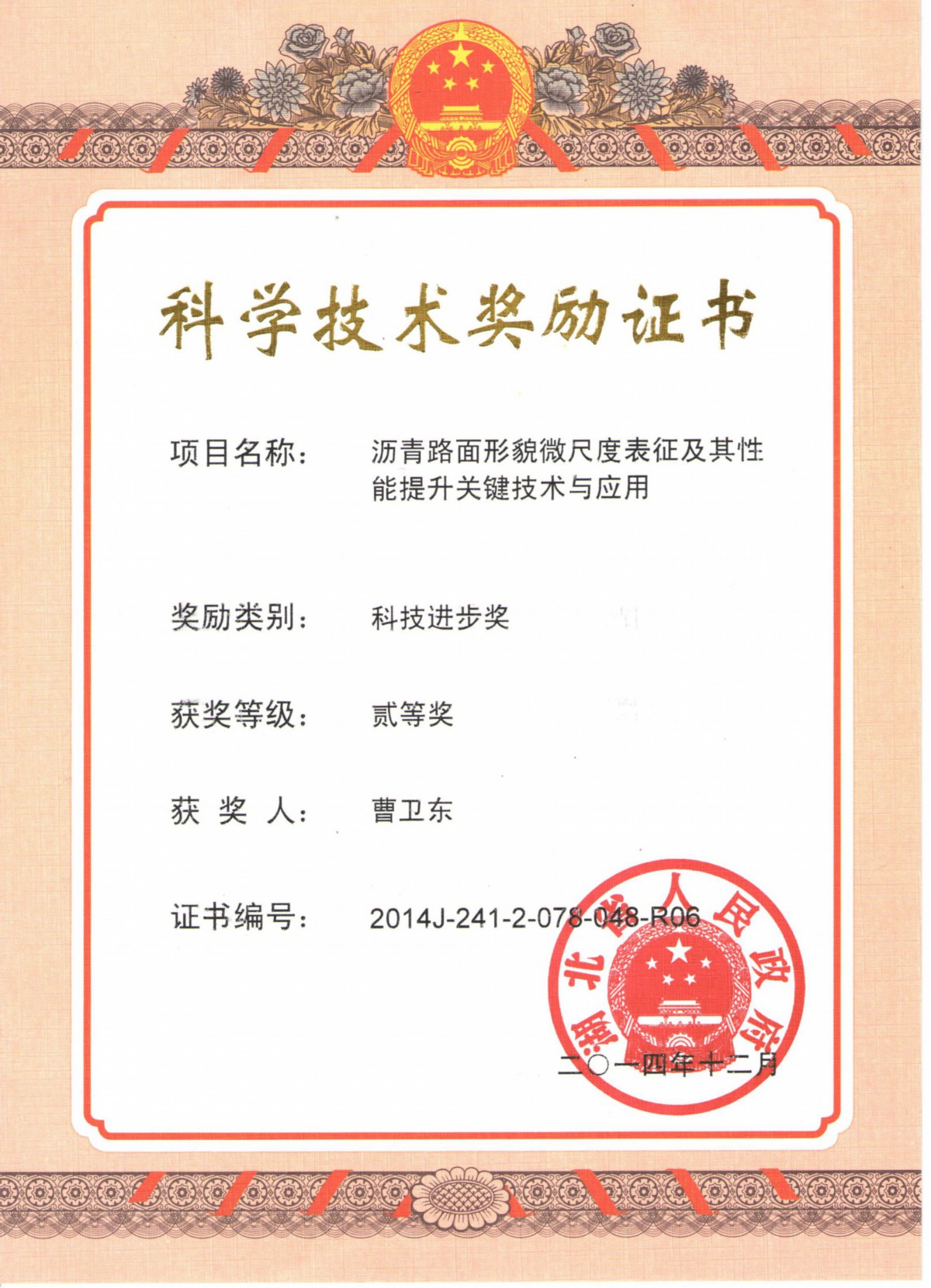 获奖日期:2014-12-20