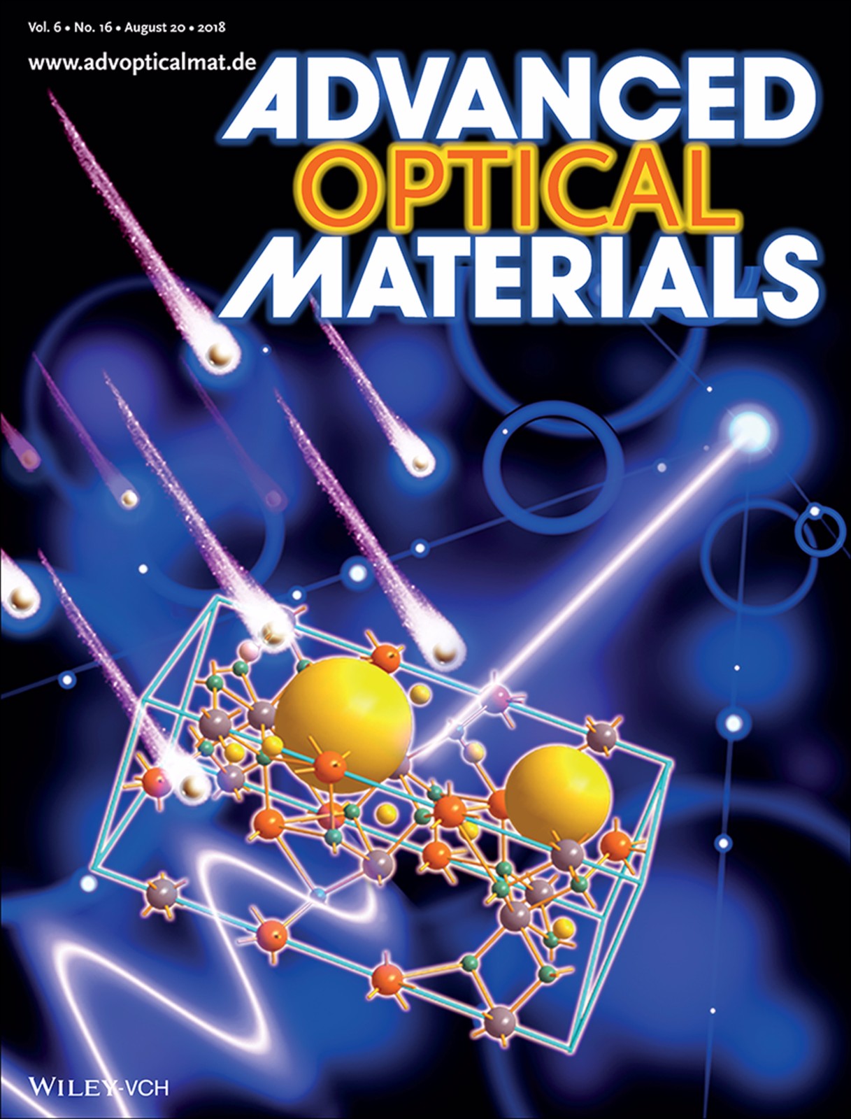 近日,《Advanced Optical Materials》(影响因子为7.43)发表了逄驰等人关于基于铌酸锂晶体的新型饱和吸收体的研究成果,题目为“Lithium Niobate Crystal with Embedded Au Nanoparticles: A New Saturable Absorber for Efficient Mode-Locking of Ultrafast Laser Pulses at 1 μm”,Advanced Optical Materials 6, 1800357, (2018),并被选为该期刊的封底(Back Cover)。铌酸锂(LiNbO3)多功能介电晶体材料由于其独特的电光、非线性光学、光折变、声光、铁电和压电等性能,在科研与工业等领域,受到了广泛的关注。基于LiNbO3晶体的光子学器件,与微纳加工等技术相结合,被广泛应用于电光调制、光放大与激光制备等方面。然而,由于LiNbO3晶体在近红外波段的双光子吸收特性,限制了其作为可饱和吸收体制备脉冲激光。本课题组利用Au离子辐照LiNbO3晶体,在晶体表层以下~120nm范围内合成嵌入式的金纳米颗粒,能够有效调控LiNbO3晶体的非线性光学特性,实现饱和吸收;将嵌入金纳米颗粒的铌酸锂晶片作为新型饱和吸收体,实现了近红外1微米波段的调Q锁模波导激光输出,脉宽为74ps,充分频率为6.4GHz。该工作提出了一种新的方法调控LiNbO3晶体非线性光学性质,首次将LiNbO3晶体作为新型的近红外波段可饱和吸收体应用于调Q锁模激光产生,拓宽了LiNbO3晶体在集成光子学器件中的应用与发展,是陈峰课题组在离子注入晶体纳米颗粒合成与应用研究方向的又一重要研究进展。