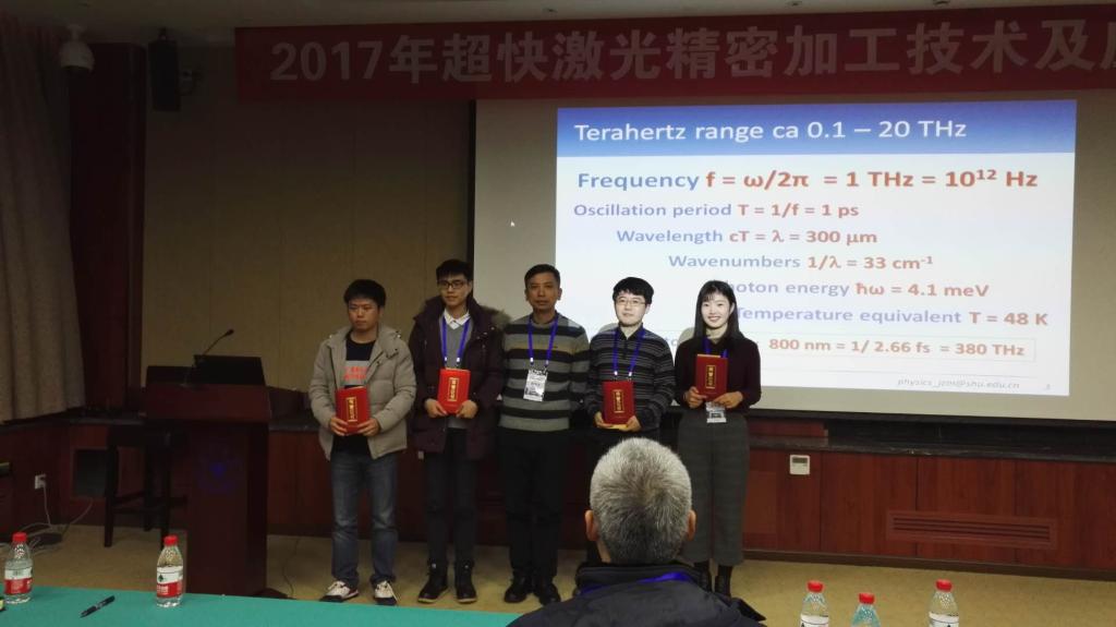 研究生李玲琪在2017年超快激光精密加工技术及应用研讨会获得最佳展报奖。