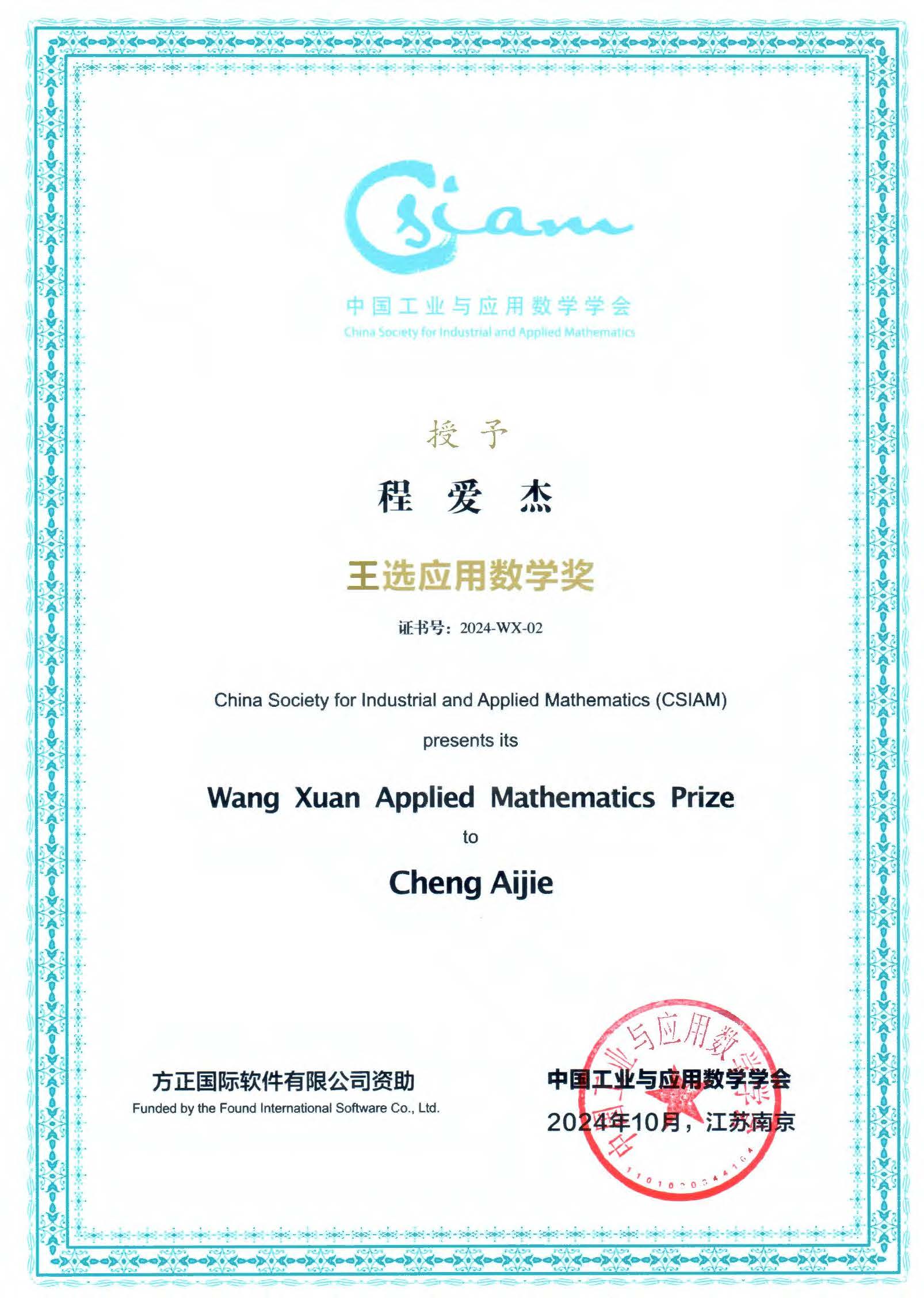获奖名称:中国工业与应用数学学会第二届王选应用数学奖