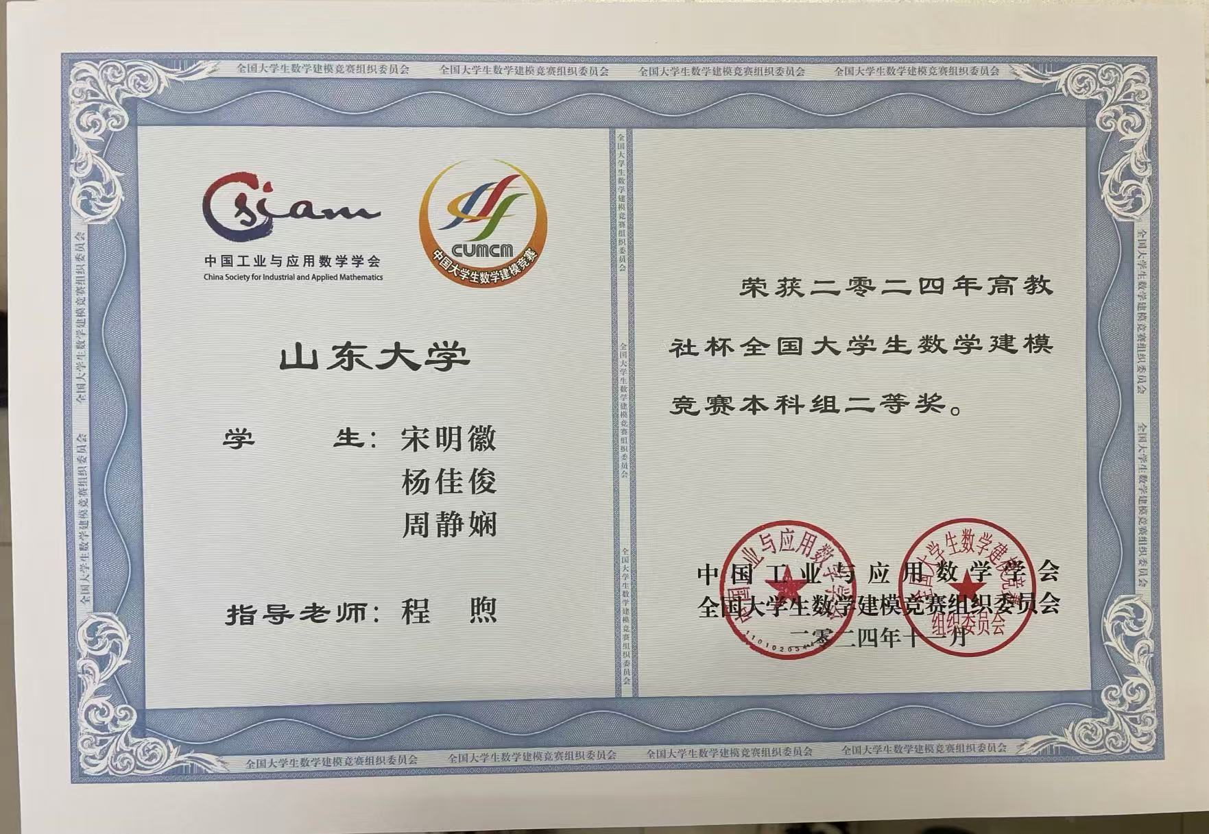 Title of Award:全国大学生数学建模竞赛全国二等奖
