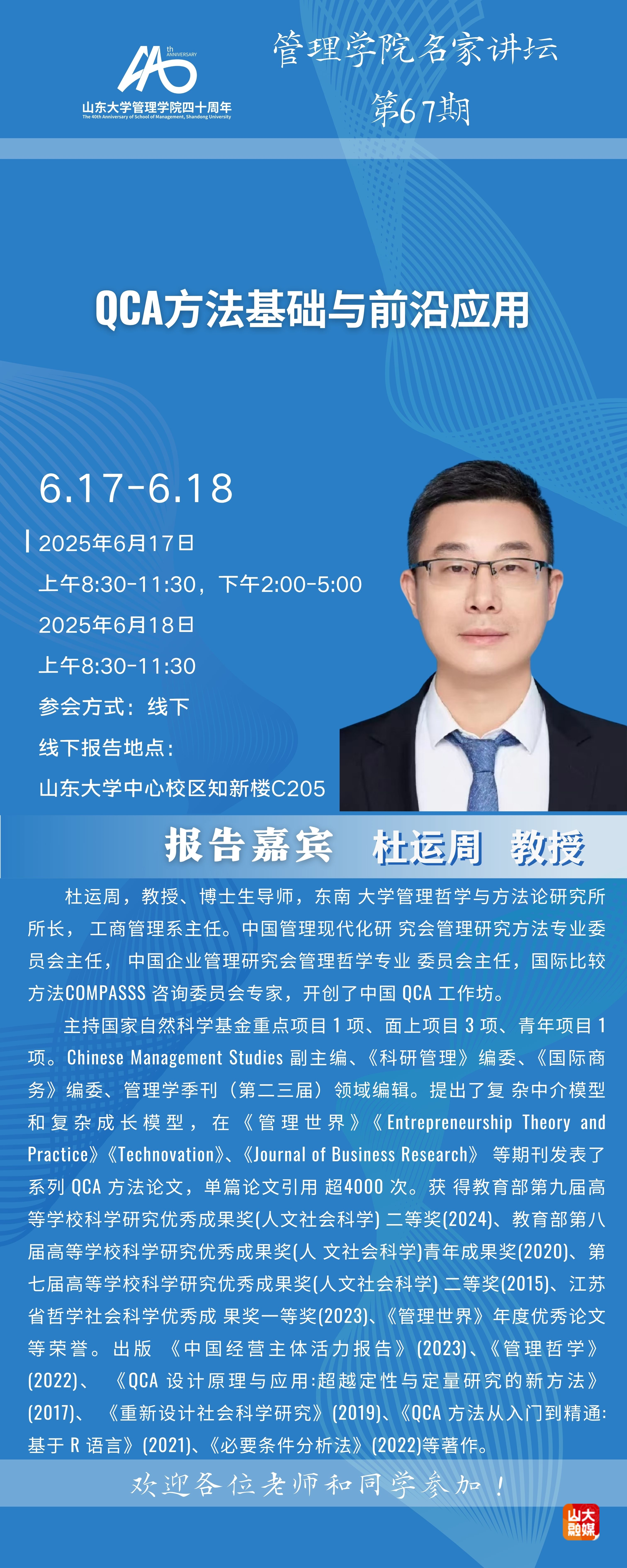 管理学院名家讲坛第67期:QCA方法基础与前沿应用