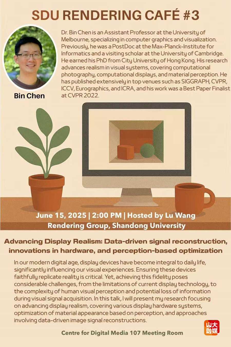 软件学院“智能·软件·未来”论坛第5期 |“SDU Rendering Café”系列讲座第3期:Advancing Display Realism:Data-driven signal reconstruction,innovations in hardware, and perception-based optimization