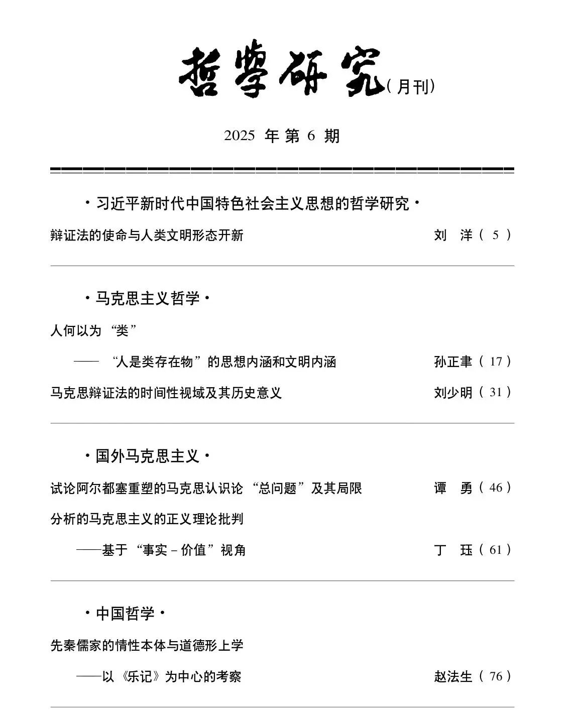 [本站讯]近日,山东大学哲学与社会发展学院赵法生教授在《哲学研究》2025年第6期上发表了题为《先秦儒家的情性本体与道德形上学-以< 乐记>为中心的考察》的高质量论文。