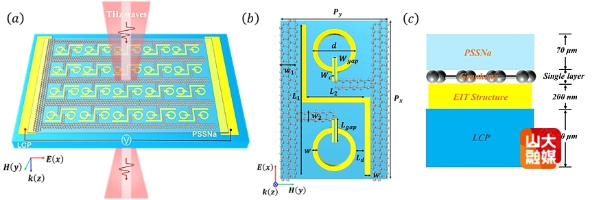 电磁诱导透明(Electromagnetically Induced Transparency, EIT)超材料在慢光效应、传感与非线性增强等方向有着重要的科研价值;通过集成调控材料和器件更是能够赋予EIT超材料多功能特性,在未来的6G通信、太赫兹指纹谱传感、生物检测等领域有着重要应用前景。然而,太赫兹频段缺少有效调控超表面的技术手段,也缺乏低损耗、低介电常数、柔性集成的介质载板。