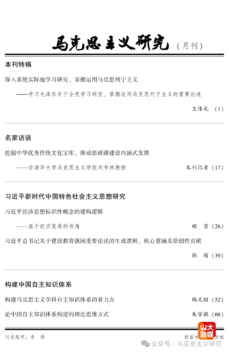 《马克思主义研究》作为中国马克思主义理论研究的顶级期刊,由中国社会科学院主管、中国社会科学院马克思主义研究院主办,荣获“全国百强社科期刊”“期刊数字影响力100强”等多项荣誉,连续多年获得“国家社科基金资助优秀期刊”称号,聚焦重大理论与现实问题研究及习近平新时代中国特色社会主义思想阐释。