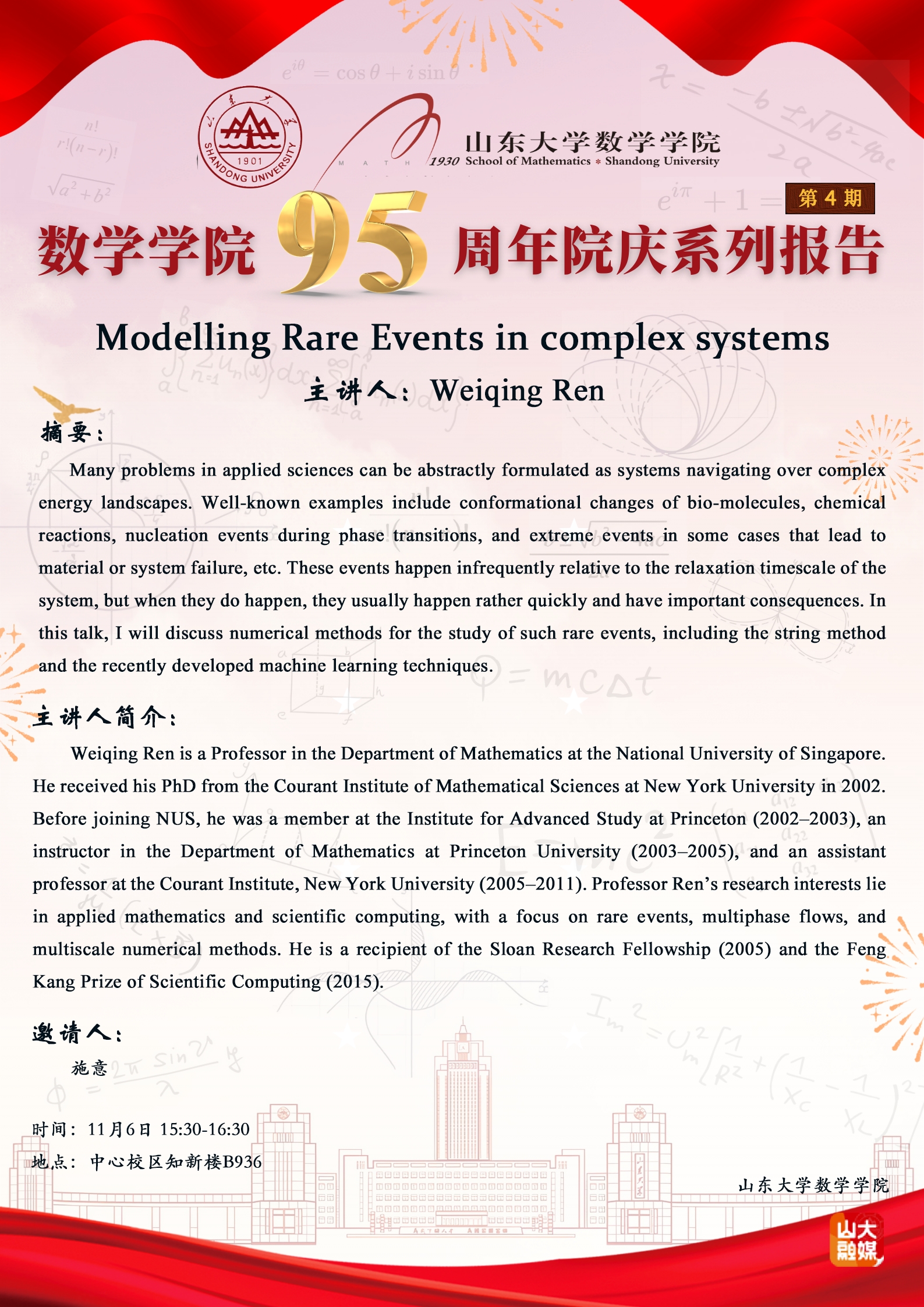 数学学院95周年院庆系列报告第4期:Modelling Rare Events in complex systems