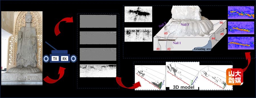 [本站讯]近日,数智考古与中华文明特色分中心、土建与水利学院工程软件系孙怀凤教授团队,数智考古与中华文明特色分中心、文化遗产研究院李力副教授团队与山东省文物保护修复与鉴定中心、青岛市博物馆开展合作,在国际权威期刊Journal of Cultural Heritage在线发表研究论文“Decoding the stone Buddha: Three-dimensional ground penetrating radar attribute insights into cracks and restoration history of Sumeru throne”(JCR Q1、中科院艺术学一区)。土建与水利学院博士研究生葛峻恺为第一作者,孙怀凤教授、李力副教授为本文的共同通讯作者,山东大学为第一科研单位。