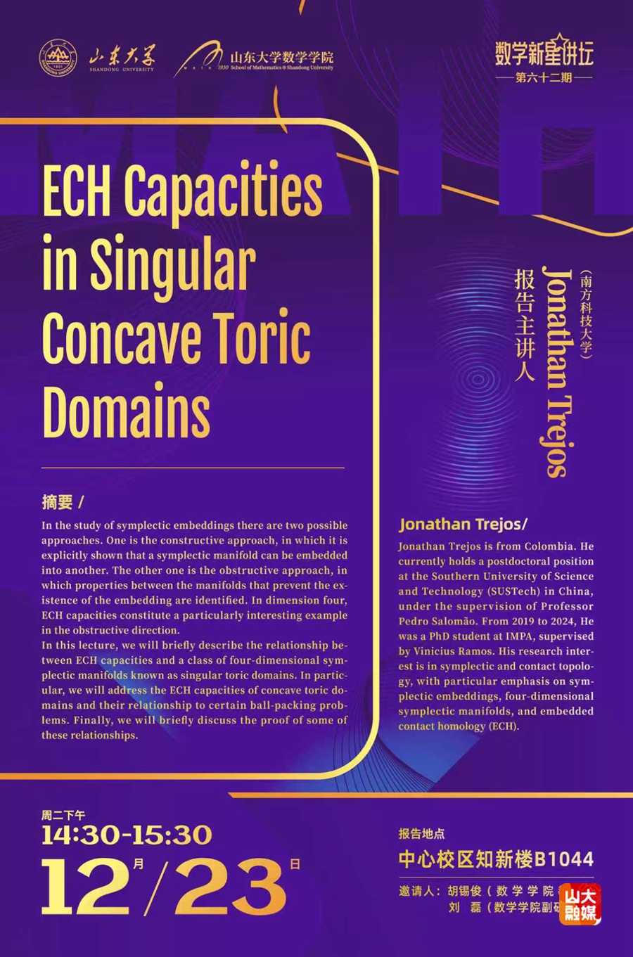 数学学院新星讲坛第62期:ECH Capacities in Singular Concave Toric Domains