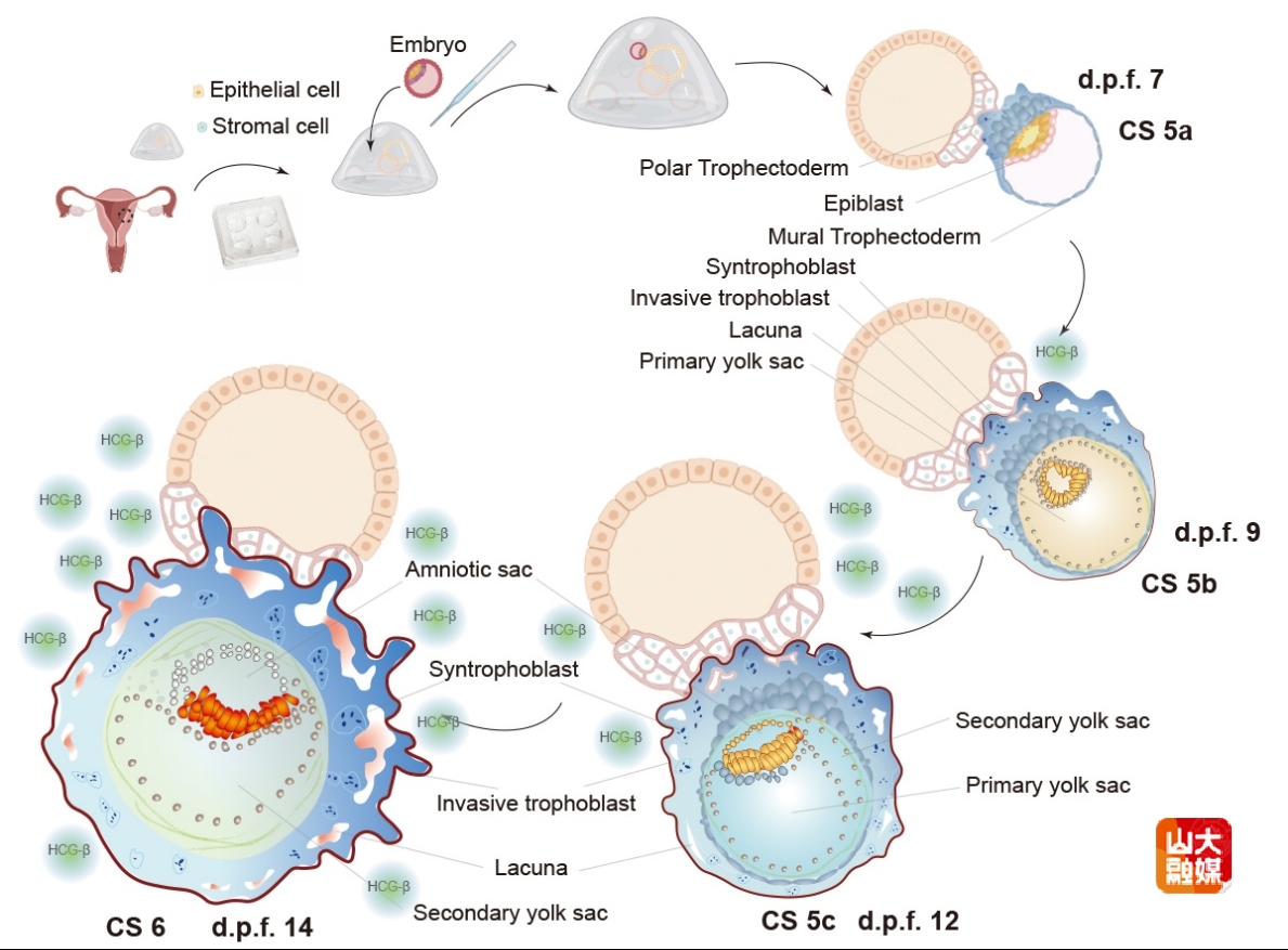[本站讯]近日,山东大学妇儿与生殖健康研究院陈子江院士、赵涵教授、吴克良教授团队联合美国西南医学中心吴军教授团队在《细胞-干细胞》(Cell Stem Cell)期刊在线报道了题为“3D Post-Implantation Co-Culture of Human Embryo and Endometrium”的长篇研究论文。赵涵教授、陈子江院士、吴克良教授、吴军教授为本文共同通讯作者。山东大学妇儿与生殖健康研究院宋劲竹、南京医科大学副教授赵如凇、山东大学齐鲁医院博士后张玉为本文共同第一作者。山东大学为第一作者单位和通讯作者单位。