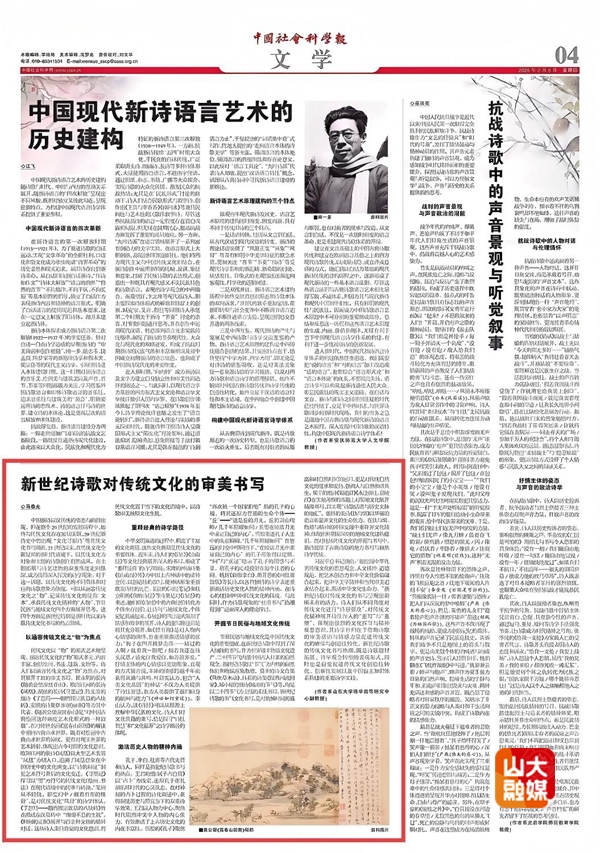 [本站讯] 2月5日,人文艺术研究院副教授马春光在《中国社会科学报》文学版发表题为《新世纪诗歌对传统文化的审美书写》的学术文章。