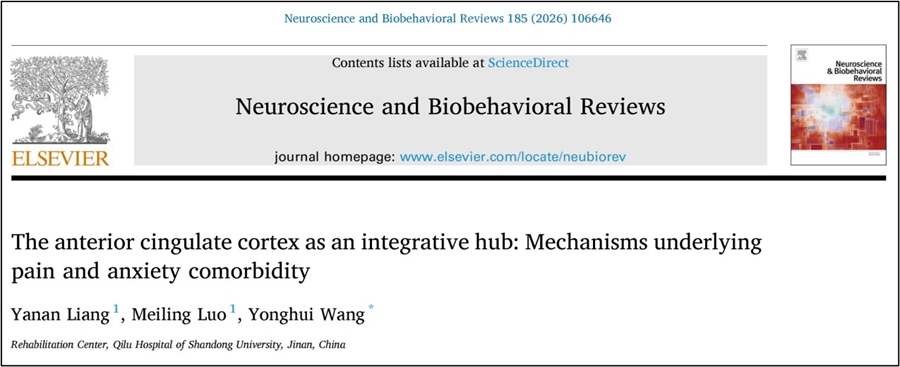 [本站讯]近日,山东大学齐鲁医院康复医学科王永慧教授团队在国际权威期刊Neuroscience and Biobehavioral Reviews(中科院一区TOP期刊,5年IF=9.3)发表题为“The anterior cingulate cortex as an integrative hub: Mechanisms underlying pain and anxiety comorbidity”的综述论文。该综述创新性地提出,前扣带皮层(ACC)作为关键整合枢纽,其功能可塑性失调构成了疼痛与焦虑共病的核心神经机制,这一框架性突破为深入理解共病本质、开发协同治疗策略指明了新方向。王永慧教授为本文通讯作者,山东大学齐鲁医院为第一作者和通讯作者单位。
