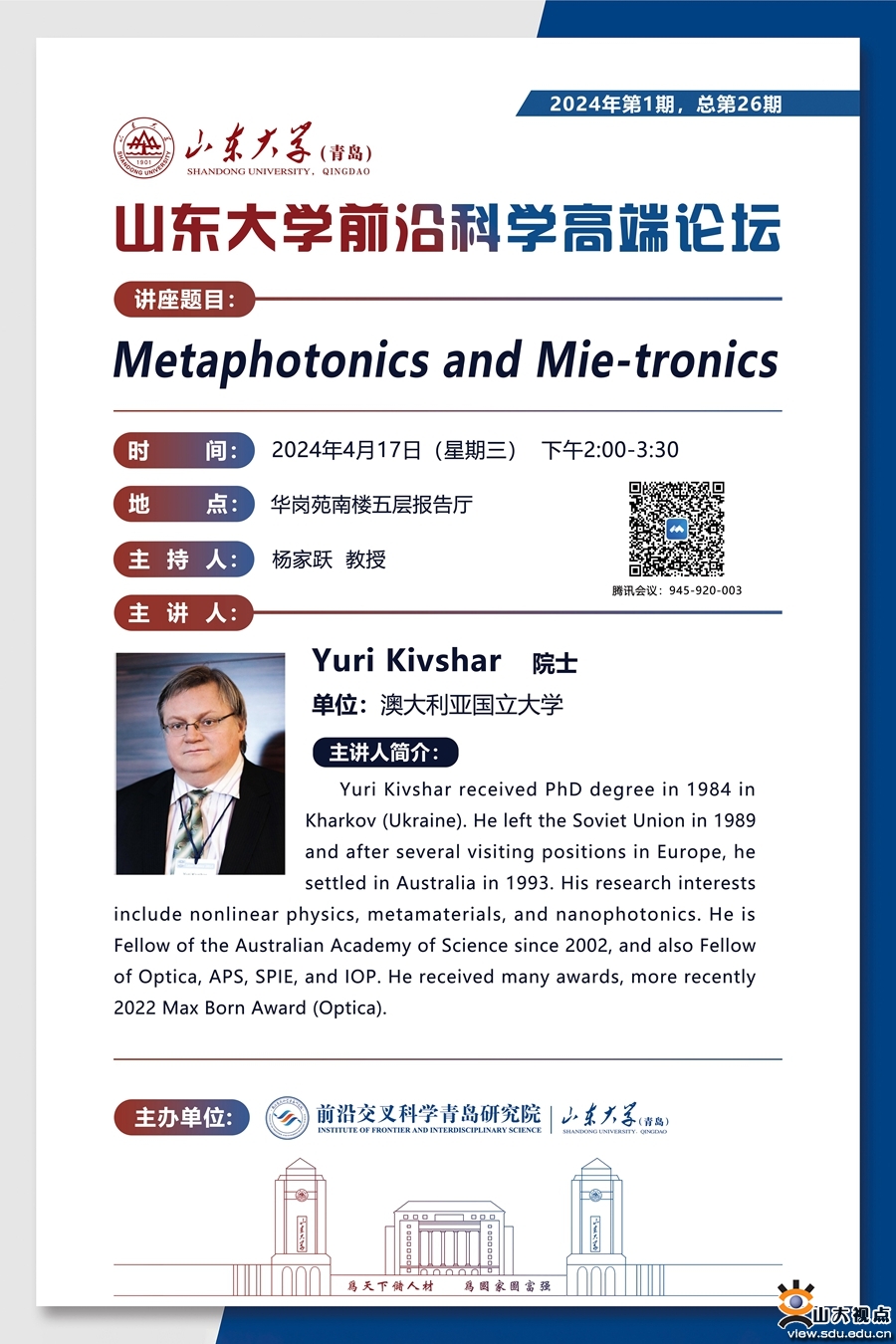 山东大学前沿科学高端论坛2024年第1期
