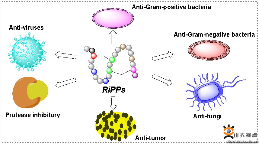 该论文按照活性类型(抗细菌、抗真菌、抗病毒、蛋白酶抑制剂、杀线虫、促血管生成等)对近十年报道的核糖体肽类化合物进行了系统性总结,并对这些化合物的作用靶点进行了总结,同时对该领域的研究前景与挑战进行了展望。论文对后续核糖体肽的基因组挖掘及药物开发具有启发作用。