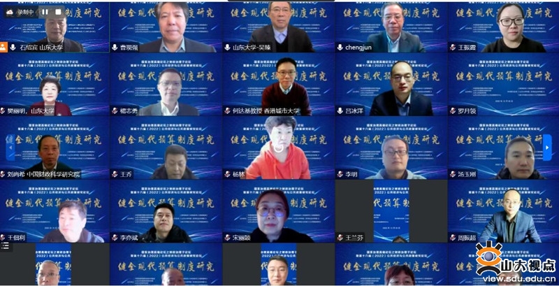 [本站讯]12月30日,由中国国家预算治理研究联盟、山东大学国家治理研究院、山东大学经济学院、山东大学公共经济与公共政策研究中心联合主办的“国家治理高端论坛之财政治理子论坛暨第十六届(2022)公共经济与公共政策研究论坛”以线上方式举行,论坛主题是“健全现代预算制度研究”。山东大学原校长、中国国家预算治理研究联盟理事长、山东大学国家治理研究院院长樊丽明,中国财政科学研究院院长刘尚希,全国人大常委会预算工委预决算审查室主任何成军,江西财经大学原党委书记王乔,中国社科院财经战略研究院副院长杨志勇,山东大学副校长吴臻出席论坛。