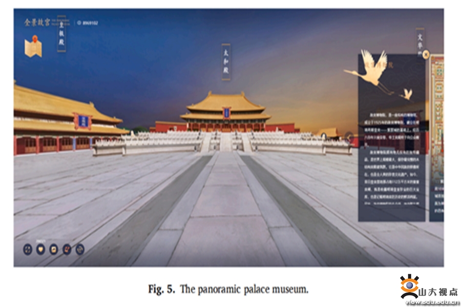 研究2试图探究不同游戏化元素影响动机疲劳和游客满意度的方式和程度。参与者被邀请参与体验一个在线全景360°VR旅游(全景故宫)。与研究1中新创建的虚拟场景不同,全景故宫(图5)是一个非常受欢迎的真实旅游场景。作为最初的全景宫殿博物馆VR导览不包含游戏化元素,常用的四个游戏化元素——挑战(任务、测验)、反馈、奖励(积分,奖品)和排行榜被设计到参与者的虚拟旅游体验中。研究2进一步证明,游戏化的四个要素(挑战、反馈、奖励和排行榜)可以缓解动机疲劳,提高游客满意度,其中反馈起着最大的作用。研究结果对于VR体验生产商、旅游目的地从业者在VR体验提升方面以及游戏化在VR旅游体验中的应用都具有重要的现实意义。