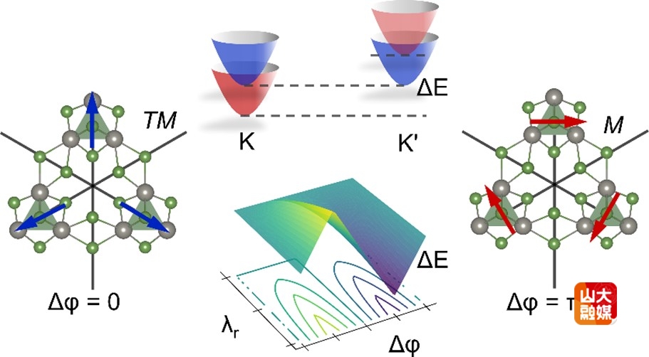 进展二:在二维材料中,奇异物理和自旋取向之间的密切关系激发了对有效控制自旋取向的持续研究。尽管人们对调控自旋取向的兴趣激增,但普遍认为大多数二维晶格中自旋的优选方向仅限于特定方向,即面外和面内。从物理上讲,这种限制归因于电子轨道和自旋之间的特殊耦合,这种耦合屈服于降维约束的晶格对称性。这与三维磁性体系形成鲜明对比,在三维磁性体系中,自旋原则上可以沿任意方向设置。戴瑛团队提出了一种在二维多铁性材料中沿面内外方向调制自旋的机制。利用简单的微扰理论分析,发现来自面内和面外轨道的自旋-轨道耦合诱导相互作用之间的竞争可能会导致自旋倾斜。通过选择具有对称性赋予的特定低能轨道占据的体系,这种竞争可以通过超快光照引入。借助实时含时密度泛函理论(rt-TDFT),进一步证明这种机制在多铁性单层CuCr2Se4中是可以实现的。相关研究成果以“Light-Induced Spin Slanting in 2D Multiferroic Magnet”为题发表在国际期刊ACS Nano上。论文第一作者为2023级硕士生赵江雨,马衍东教授和戴瑛教授为共同通讯作者,山东大学为唯一作者单位。