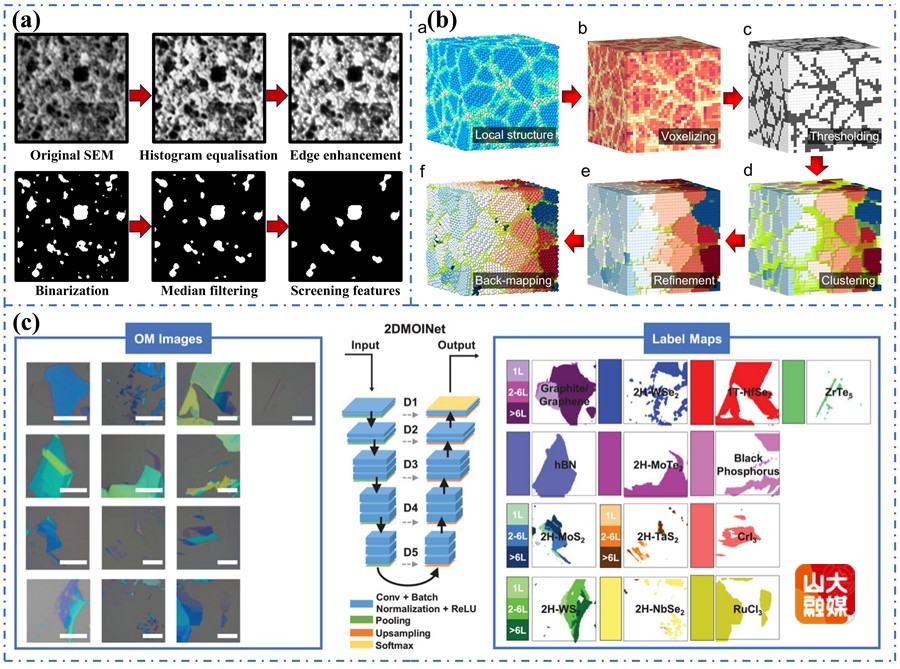 图2. (a)自动化材料设计系统 (b)碳材料纹理特征识别方法