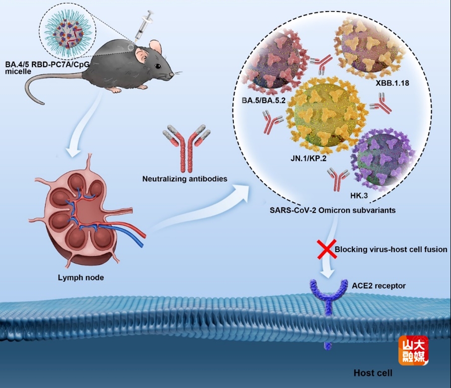 [本站讯]近日,山东大学国家糖工程技术研究中心吴选俊教授团队在SARS-CoV-2病毒广谱疫苗研发领域取得重要进展。相关研究成果以“A Self-Assembled Nanovaccine with BA.4/5 Receptor-Binding Domain and CpG Oligodeoxynucleotides Induces Broad-Spectrum Neutralization against SARS-CoV-2 Omicron Subvariants”为题,发表于国际材料科学领域顶级期刊ACS Nano(最新影响因子15.8)。该研究由山东大学与中国科技大学合作完成,吴选俊教授为论文最后通讯作者,山东大学博士研究生杨晨东为共同第一作者,山东大学为第一作者单位和通讯作者单位。