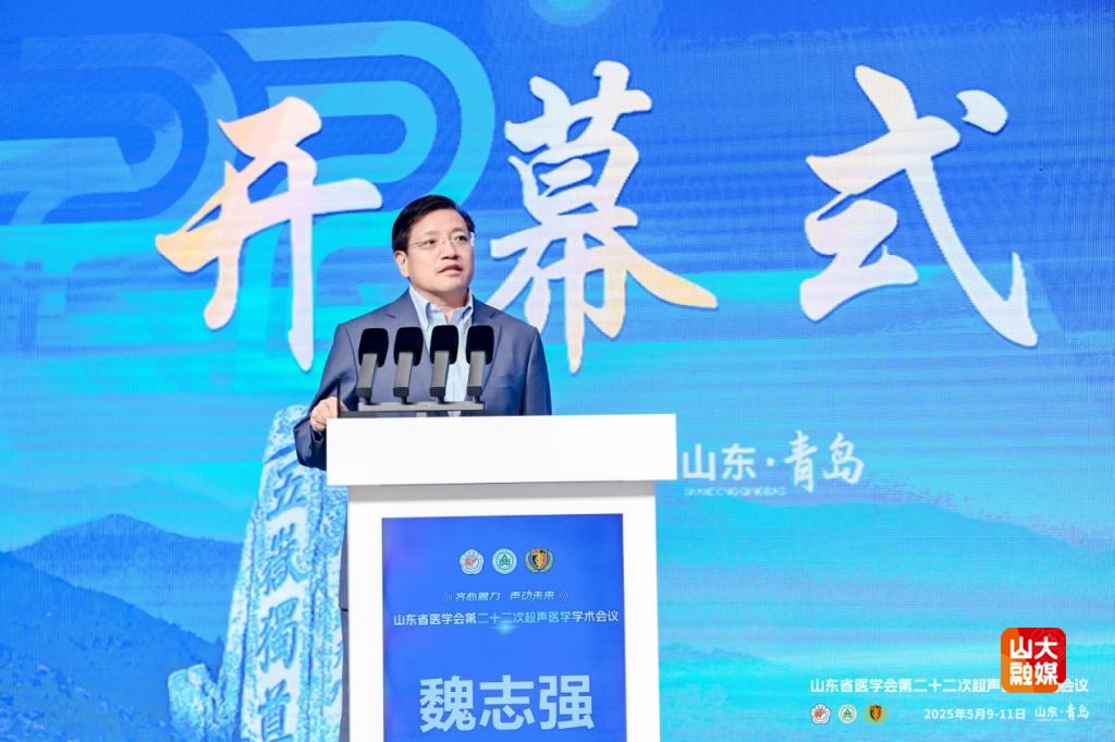 [本站讯]为全面展示全省超声医学领域的创新研究成果,促进超声医学学术交流与技术提升,推动我省超声医学事业高质量发展,5月9—11日,由山东省医学会主办,山东省医学会超声医学分会、山东大学齐鲁医院和青岛大学附属医院承办的山东省医学会第二十二次超声医学学术会议在青岛举办。中国工程院院士、山东大学齐鲁医院心血管内科张运和中华医学会超声医学分会主任委员梁萍线上致辞。青岛大学校长魏志强、青岛市医学会秘书长管军、青岛大学附属医院副院长陶昊、山东大学齐鲁医院心血管内科张梅等出席开幕式并致辞。大会开幕式由青岛大学附属医院心脏超声科主任孙品和山东第一医科大学第一附属医院超声医学科主任马喆主持。