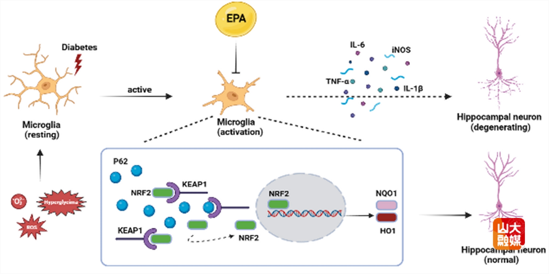 发表在Food &Function的封面文章显示,EPA可通过活化P62/KEAP1/NRF2信号通路延缓糖尿病小鼠认知功能障碍进展。