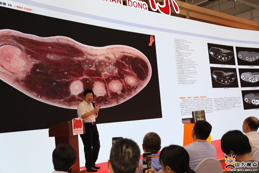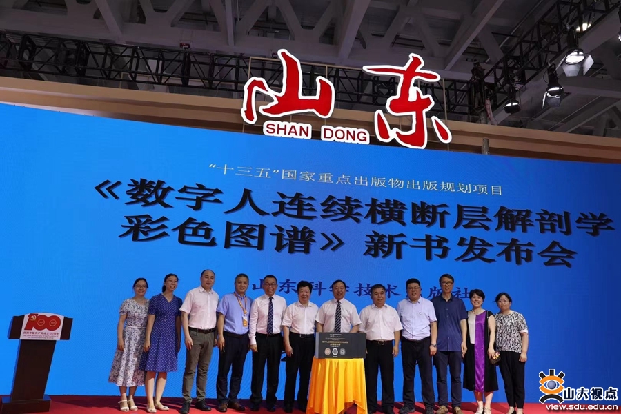 [本站讯]7月15日,由国家新闻出版署、山东省人民政府、济南市人民政府主办的以“致敬建党百年、阅享盛世书香”为主题的第30届全国图书交易博览会在山东国际会展中心开幕,山东大学基础医学院刘树伟教授主持编写的“十三五”国家重点出版物出版规划项目《数字人连续横断层解剖学彩色图谱》新书发布会举行。山东大学齐鲁医学院党工委书记刘洪渭、基础医学院党委书记赵福昌,山东科学技术出版社总编辑苑嗣文,以及该图谱的编者和编辑50余人参加发布会。