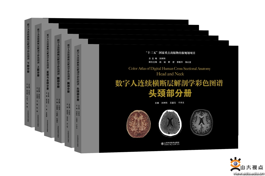 《数字人连续横断层解剖学彩色图谱》的编写历时三年,作者近百人,涉及解剖学、影像学、外科学、计算机和工程技术人员。共包括头颈部、胸部、腹部、盆部与会阴、上肢和下肢6个分册,图像共4519幅(含断层标本彩色图像917幅、螺旋CT图像1753幅、3TMR图像1841幅、其他图像8幅),文字约200万字。所有数据和图片均为原创,内容丰富、制作精美,具有很强的创新性和实用性。钟世镇院士、张运院士、顾晓松院士三位医学大家为之作序,并给予高度评价和极力推荐。本图谱是山东大学断层影像解剖学团队多年成果的集中体现,代表了目前我国断层影像解剖学的最高学术水平。该图谱将成为断层解剖学的经典、解剖学工作者案头必备的工具书和临床工作者的阅片指南。