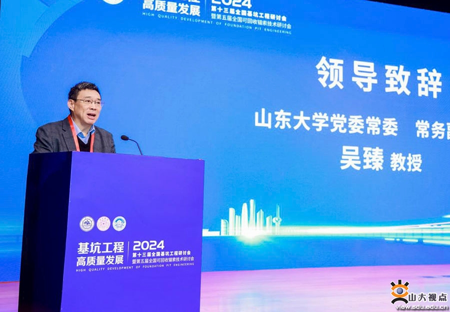 吴臻表示,山东大学积极探索有组织人才培养、科研创新和服务社会的新模式,在基坑工程领域始终聚焦国家重大战略、紧盯经济社会需求,攻克了多项“卡脖子”技术难题,为解决国家工程难题贡献了山大智慧和力量。希望各位专家学者与山大一同开展“大科学”研究,不断推进重大科研任务基础研究、关键技术、装备研制、成果转化到产业化的全链条设计,努力为实现高水平科技自立自强、以中国式现代化全面推进中华民族伟大复兴作出新的更大贡献。