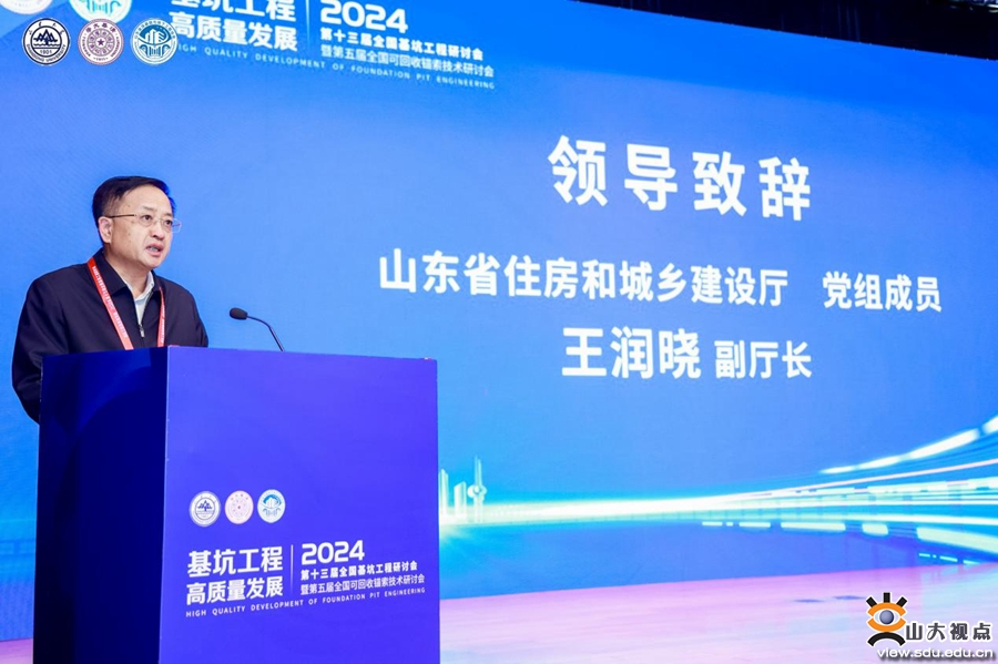 王润晓在致辞中强调,本次大会以“基坑工程高质量发展”为主题,以“深基坑支护理念和发展方向”为主要研究任务,有助于了解当前基坑工程发展趋势和前沿技术,也有助于明确工程质量安全提升的方向和路径。希望各位专家学者充分讨论,一同助力住房城乡建设事业高质量发展,为实施质量强国、强省战略,奋力谱写中国式现代化山东篇章贡献新的更大力量。