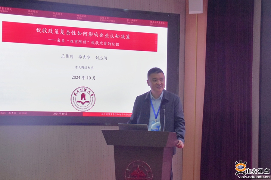 东北财经大学党委常委、副校长王伟同基于业务招待费税前扣除政策产生的双重限额标准,探究了税收政策复杂性对企业认知决策的影响。报告利用2008年前后政策变化进行识别分析,发现由于税收政策复杂性带来的认知错误驱动,企业产生非理性操纵行为,在业务招待费占营业收入千分之五附近存在较高的聚束现象,并提出了简化税制设计、提高税收政策凸显性的政策建议。