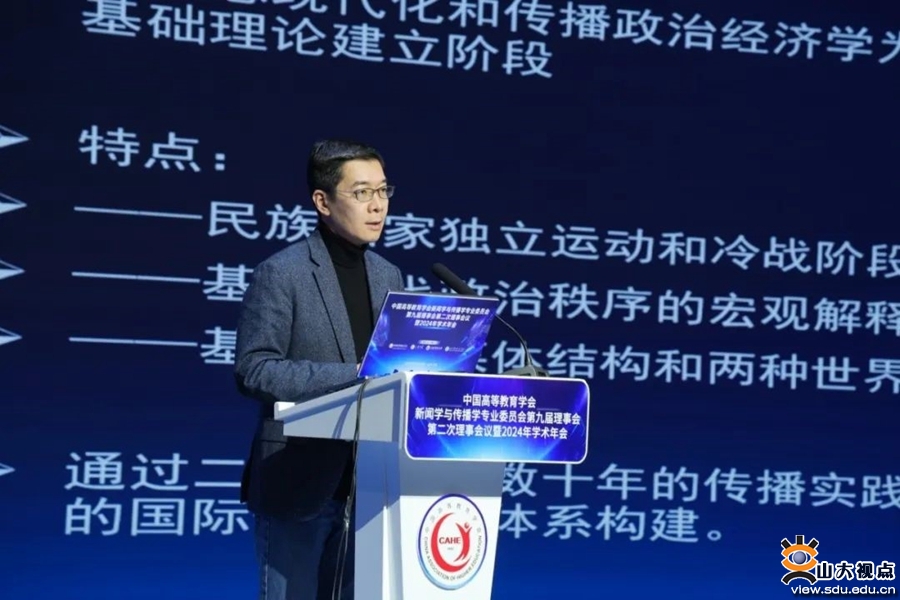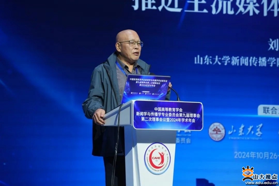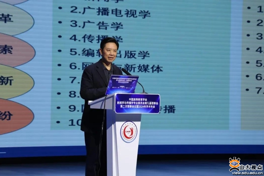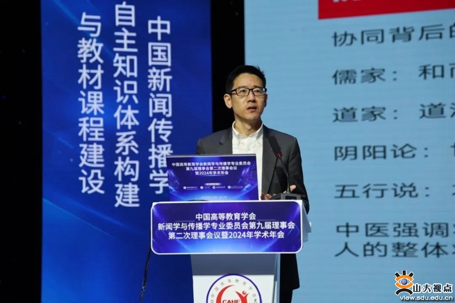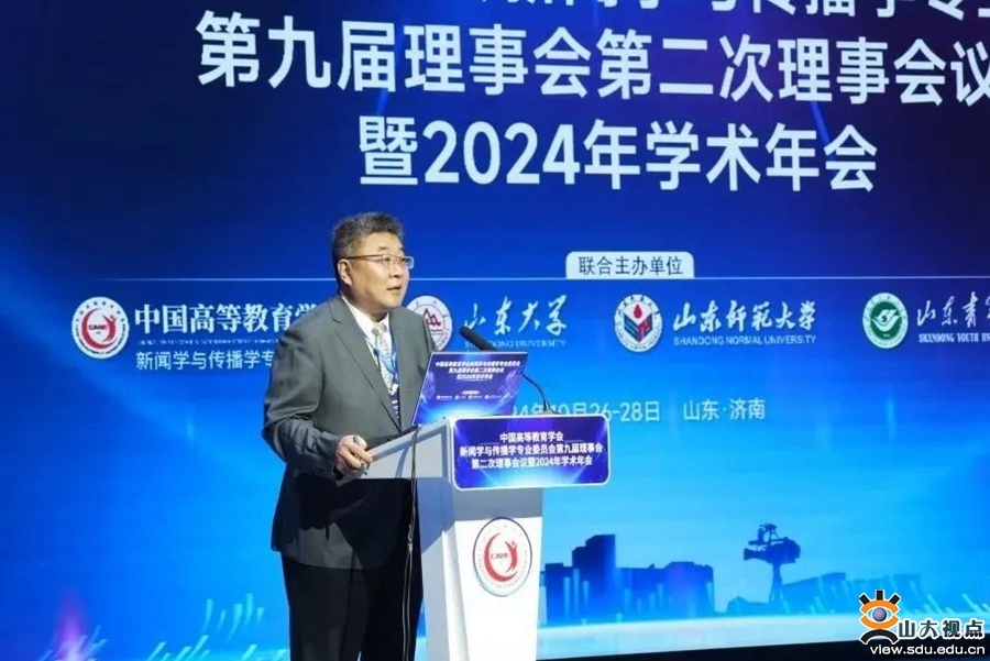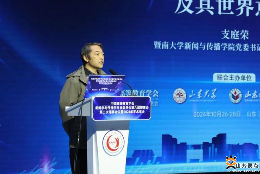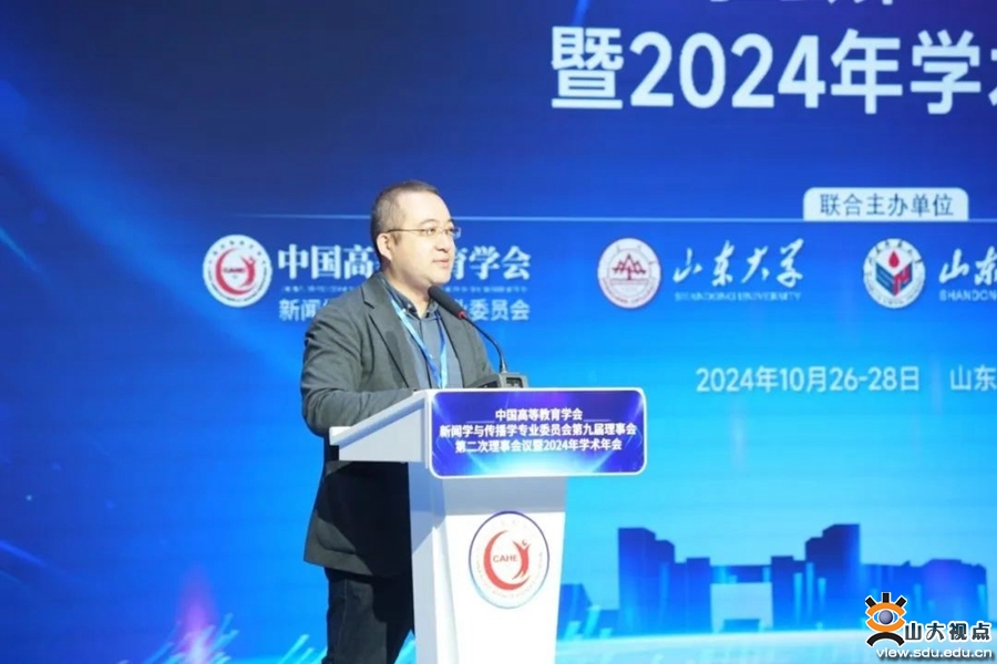 [本站讯]10月26日至28日,由山东大学联合中国高等教育学会新闻学与传播学专业委员会、山东师范大学、山东青年政治学院主办的中国高等教育学会新闻学与传播学专业委员会第九届理事会第二次理事会议暨2024年学术年会在山东济南举行。年会以“中国新闻传播自主知识体系构建与教材课程建设”为主题,设置一个主旨论坛和四个分论坛,70多位学者、专家作报告。