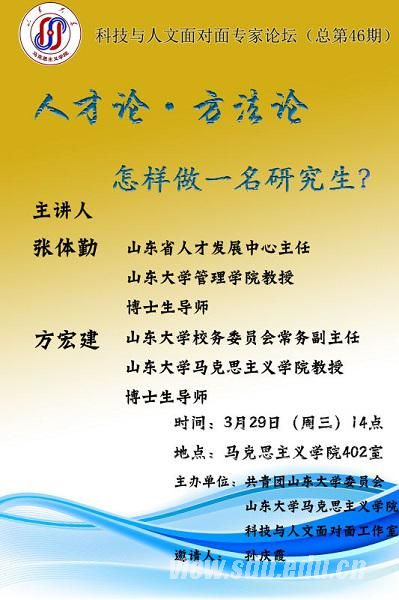 “科技与人文面对面专家论坛”:人才论·方法论——怎样做一名研究生?