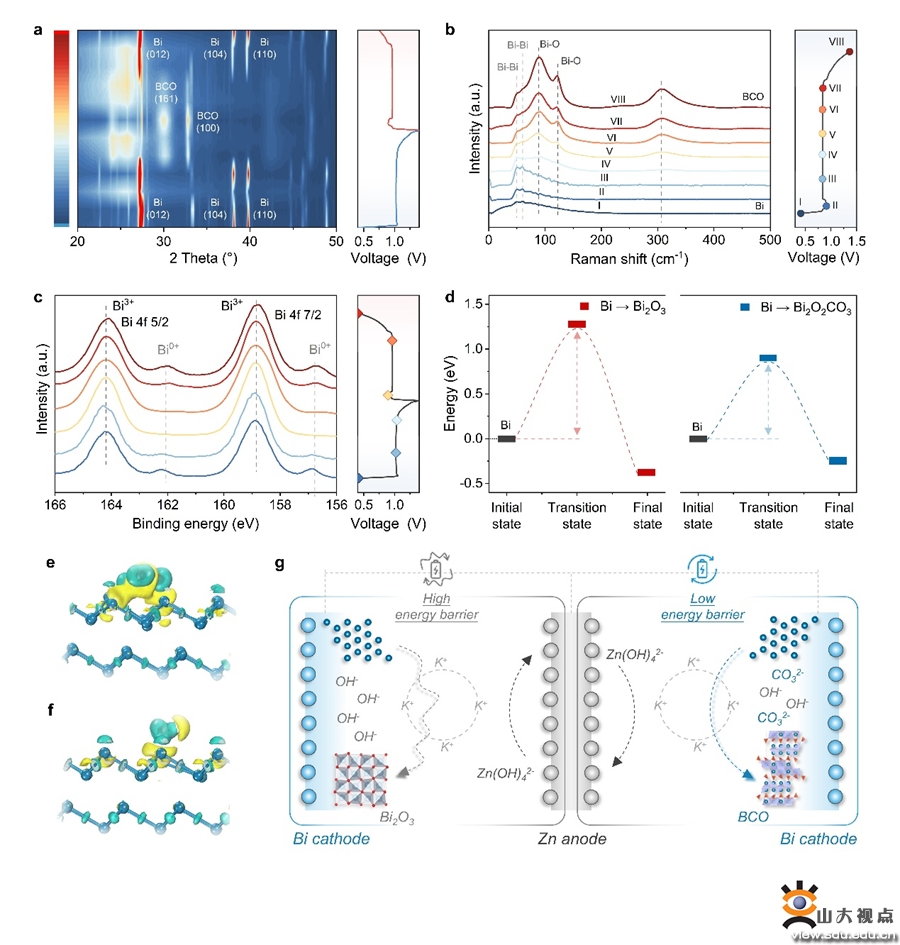 图1 碳酸根阴离子重构Bi电极电化学氧化还原路径机理研究