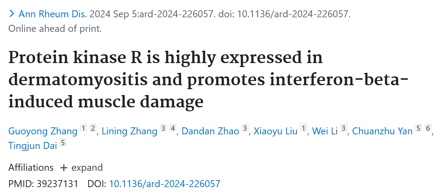 一、张国勇/焉传祝/戴廷军发现蛋白激酶R在皮肌炎中的致病新机制