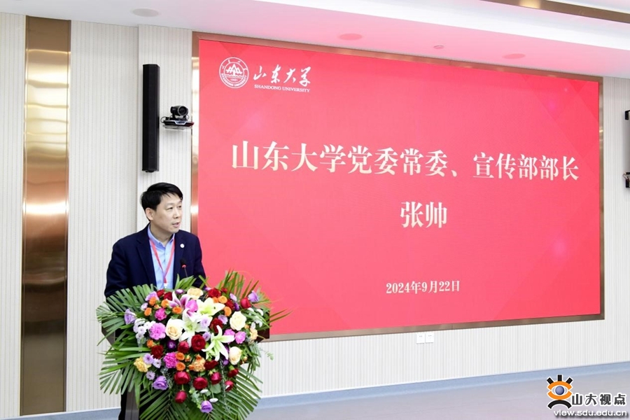 张帅表示,山东大学学习贯彻习近平总书记关于教育的重要论述,勇担教育强国时代使命,建设和发展国际新闻与传播专业,是顺应国际主流发展趋势、面向国家重大战略需求的重要举措,也是探索中国特色世界一流大学建设新路、构建卓越引领的高质量高等教育体系的具体实践。他强调,要提高政治站位,积极回应国际传播的国家之需;加强学科建设,全面展现国际传播的山大之为;强化交叉融合,主动担负起国际传播的育人之责。下一步,要依托学校深化同类学科融合发展的改革机遇,在校内探索山东大学国际新闻与传播专业相关领域的教学学术联合体的建设;要与校外党政宣传文化领域职能部门、媒体机构一起,探索人才共有、成本共担、成果共享的长效共建体制机制,形成国际传播的育人合力。推动国际传播事业高质量发展和人才队伍建设,为立足中国式现代化建构中国自主的知识体系作出更大贡献。