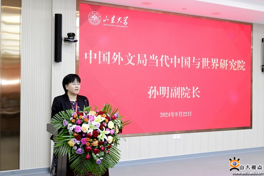 中国外文局当代中国与世界研究院副院长、研究员孙明在致辞中表示,国际传播学科体系的建设任重道远,山东大学新闻传播学院国际新闻与传播专业的设立为国际传播学科体系建设注入了新的动力。国际传播是立体的、全面的、战略的、复合的。在专业建设上可以采用“国际传播+”的模式,把国际传播与具体领域叠加,才能更好地赋能国际传播,全面提升国际传播效能。她期待中国外文局与山东大学持续开展深度合作,培养有情怀、有热情、有目标的国际新闻与传播人才,为国际传播事业贡献力量。