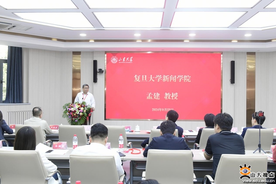 复旦大学新闻学院教授、博士生导师、复旦大学国家文化创新研究中心主任、复旦大学新闻传播学博士后流动站站长孟建在致辞时表示,党的二十届三中全会对国际传播提出了新的要求,山东大学新闻传播学院国际新闻与传播专业启动融合育人可谓“生正逢时”。国际新闻与传播是一个广阔的研究领域,必须结合自身的实际。山东大学文史见长,学科门类齐全,又地处儒家文化发祥地——山东省,充分利用好山东省和山东大学的丰富资源,勇于超越,敢于创新,国际新闻与传播专业必将“大有可为”。
