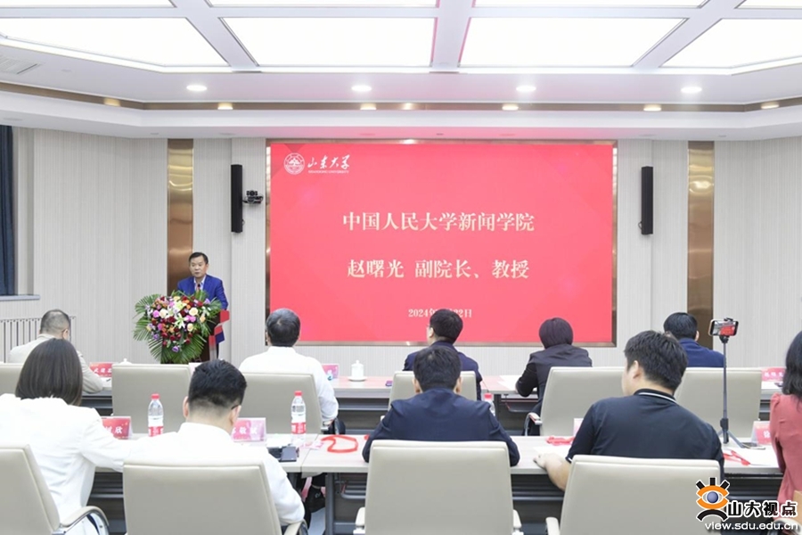 中国人民大学新闻学院副院长、教授、博士生导师、中国人民大学国家治理与舆论生态研究院副院长赵曙光在致辞时分享了中国人民大学国际新闻专业建设的宝贵经验,并表示,专业的发展应以国家顶层设计为基础,要有全球视野。山东大学设立国际新闻与传播专业,是顺应时代与国家需要的重要举措。中国人民大学新闻学院愿与山东大学新闻传播学院一起为“讲好中国故事”协同发力,作出新的贡献。