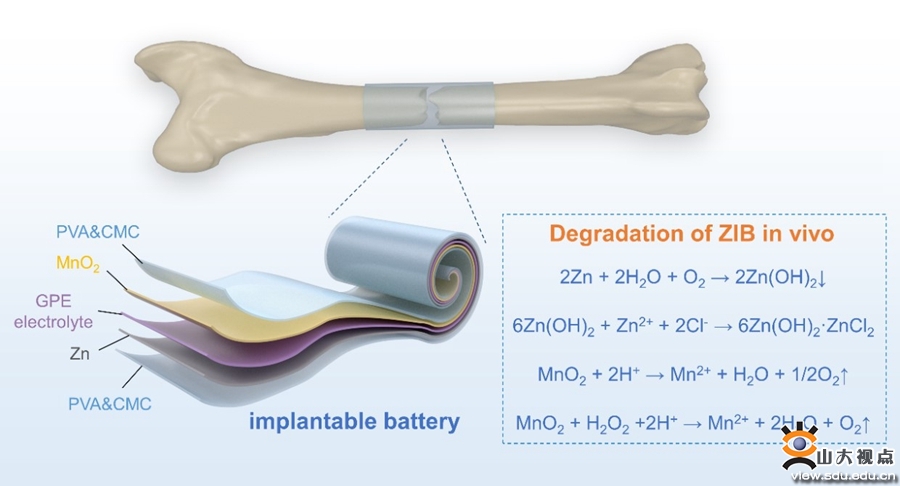 [本站讯]近日,晶体材料国家重点实验室教授王书华、刘宏与齐鲁医院副教授刘超提出了一种植入式锌离子电池并研究了其降解产物对成骨和免疫的双重作用。研究成果以“Implantable Zinc Ion Battery and Osteogenesis-Immunoregulation Bifunction of Its Catabolite”为题,发表于国际期刊ACS Nano。文章第一作者为晶体材料国家重点实验室博士研究生张锋和齐鲁医院研究生郑裕博,通讯作者为王书华教授、刘宏教授和刘超副教授。