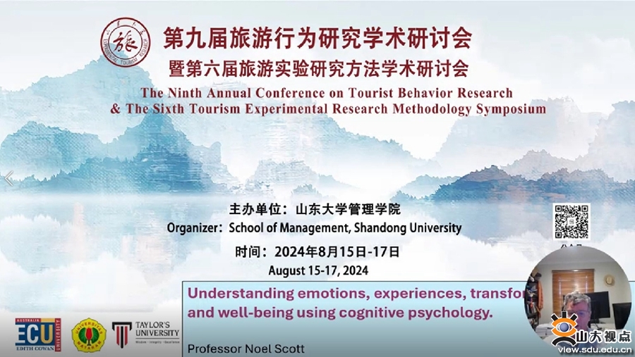 在主旨演讲环节,来自国内外高校和旅游行业头部企业的13位专家学者分别作主旨报告。山东大学教授许峰,副教授王素洁、韩若冰主持环节。北京大学教授吴必虎作题为“游历记录垂直领域大模型”主题演讲,深入讨论了大模型技术对文旅行业创新和发展的推动作用。香港理工大学讲席教授、Tourism Management期刊主编徐惠群作题为“The Rise of Experimental Design Studies: A Note of Caution”的主题演讲,提出可以通过多学科研究、重复测试、选择变量等方法解决问题。海南大学教授谢彦君以“旅游学术研究中的质疑精神与求证方法”为题,从质疑精神、质疑焦点、质疑举例、求正方法四个角度论述质疑意识在旅游研究中的重要性。澳大利亚Torrens University教授Catheryn Khoo以“The Consumption of Cultural Heritage Tourism ”为主题,从研究女性旅游的缘起出发,探讨女性增权视角下的文化遗产管理。南开大学教授陈晔以“旅游的意义——从体验到成长”为题,分享了对于旅游的意义的理解。澳大利亚Edith Cowan University教授,Taylor’s University、Mataram University兼职教授Noel Scott 线上作题为“Understanding Emotions,Experiences, Transformation, and Well-being Using Cognitive Psychology”的主旨演讲,介绍了旅游对人的幸福感获得、变革性成长等方面具有潜在的影响。中山大学副教授陈增祥以“实验与注册:缘起与实践”为题,论述了实验预注册的意义和目标,提出实验预注册对于减少研究偏见、提高实验透明度、促进实验可重复性、提升研究质量、增加实验信任的作用,分析实验预注册研究在工商领域和旅游领域的研究发展趋势。香港理工大学副教授王颖作“冲突权力景观下的游客体验”主题演讲,表示旅游目的地常常是不同利益群体之间冲突的交汇点,这些冲突可能涉及资源的分配、文化的展示、环境保护与开发等方面。西南财经大学教授吕兴洋作题为“基于神经科学实验的旅游营销测试”主题演讲,介绍了团队利用神经科学开展实验的具体过程,指出神经科学帮助揭示能够唤起积极情绪的元素,为营销人员制定更有效的策略提供借鉴。厦门大学副教授李山石以“从心动到行动:旅游田野实验的思考与展望”为题分享了旅游田野实验的理论方法与实践探索,详细阐述了旅游领域中田野实验相关的文献统计,田野实验在旅游研究设计中的位置、顺序和结构,田野实验的特点和四大类型。美国Temple University教授杨旸以“基于在线评论的旅游行为研究”为题介绍了在线评论等UGC数据对旅游行为研究的重要意义。美团研究院高级研究员王珺结合美团平台数据,作“从美团数据看旅游发展新趋势”为主题的报告,指出美团平台数据涵盖了生活服务业的丰富场景,借助平台真实数据与国家统计数据的互补,为研究文旅发展的新趋势提供了有力参考。王宁教授以“溯因推理与解释驱动的知识创新”为题作关于溯因推理与解释驱动的知识创新的报告。