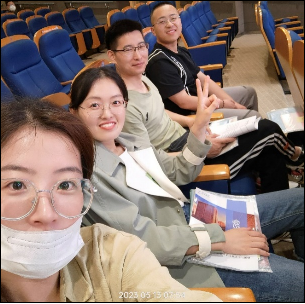 本实验室博士后李国邦、徐京华和硕士研究生公丕纤、郑帅宁参加了此次会议。2023年5月13日早,随行4人准时抵达目的地,签到后进入报告厅寻找最佳视野位置等候会议开始。