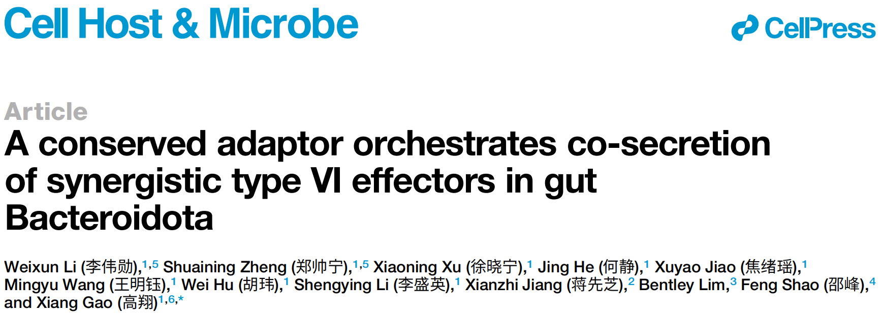 高翔课题组揭示拟杆菌T6SS多效应蛋白共分泌及其协...